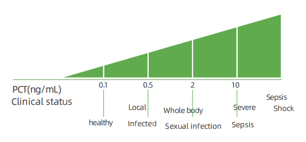 0.5~2 | Inflammation in the medium system may be infection or other diseases, such as injury, inflammation, major surgery. Cardiac shock | If there are possible infection factors, it is recommended to check PCT six hours after. |